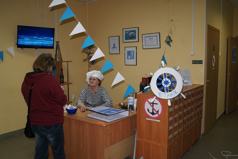 Проведение Библионочи стало возможным благодаря поддержке наших друзей-партнеров. Начальник Сланцевского отделения Государственной инспекции маломерных судов Константин Евгеньевич Завадский предоставил атрибуты морской тематики, которые помогли создать необходимую атмосферу.