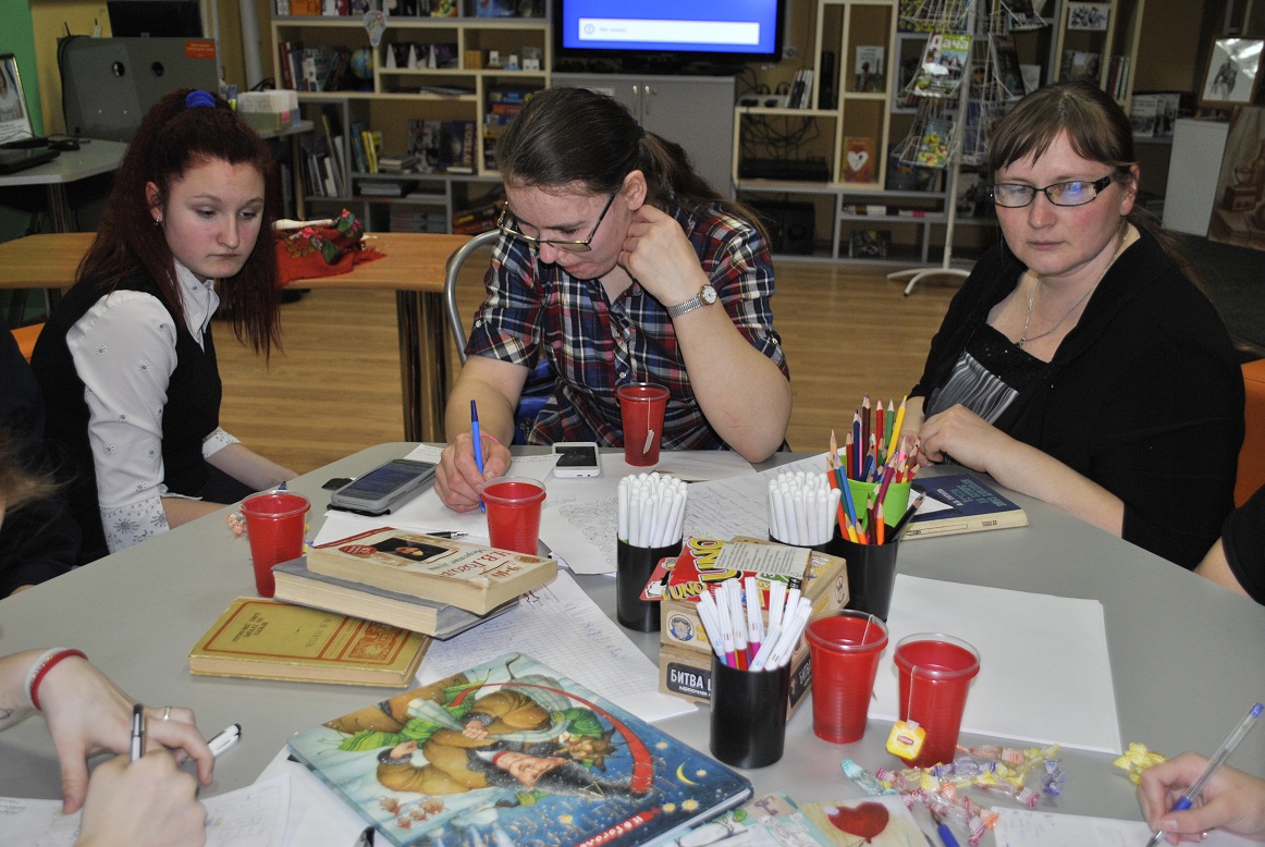 В публичной библиотеке царила эпоха XIX века. Всё было проникнуто атмосферой произведений Гоголя. Гостей встречала Панночка, это сразу создавало особое настроение. Колорит деревенской избы настраивал на домашний лад – каждый пришедший чувствовал себя, как дома. В молодёжном библиотечном центре МОСТ происходил мозговой штурм. «Весь мир – театр» приобщил молодёжь к исполнению роли фикрайтера. На столе – книги Николая Васильевича, те, которые мы все читали, которые кто-то любит и многие цитируют. Но молодёжь создавали свои. Гоголевские истории зазвучали по-другому, так, как их молодые люди воспринимают сегодня. Увлекательное занятие!