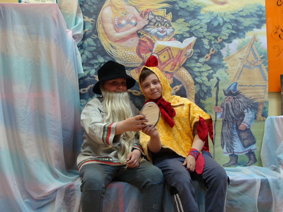 В этот вечер дети проявляли фантазию при изготовлении масок, мастерили из ложек забавных старика, старуху и золотую рыбку. В спектакле – импровизации «Как Балда усмирил сварливую Бабку или новые похождения сказочных героев» все желающие смогли продемонстрировать фантазию и артистизм, разыгрывая на новый лад сказку о Золотой рыбке. Перфоманс-читка - «Триумф импровизатора» оказалась не так-то проста. Нужно было передать эмоции, настроение Пушкинских строк. Немало было желающих проявить артистичность и креативность, раскрепоститься, услышать и передать всем своё звучание строк великого поэта. Для участников «Библиосумерков» состоялся розыгрыш книги. Победителем стала Олеся Петрова. Она получила в подарок книгу А.С. Пушкина «Сказка о рыбаке и рыбке».