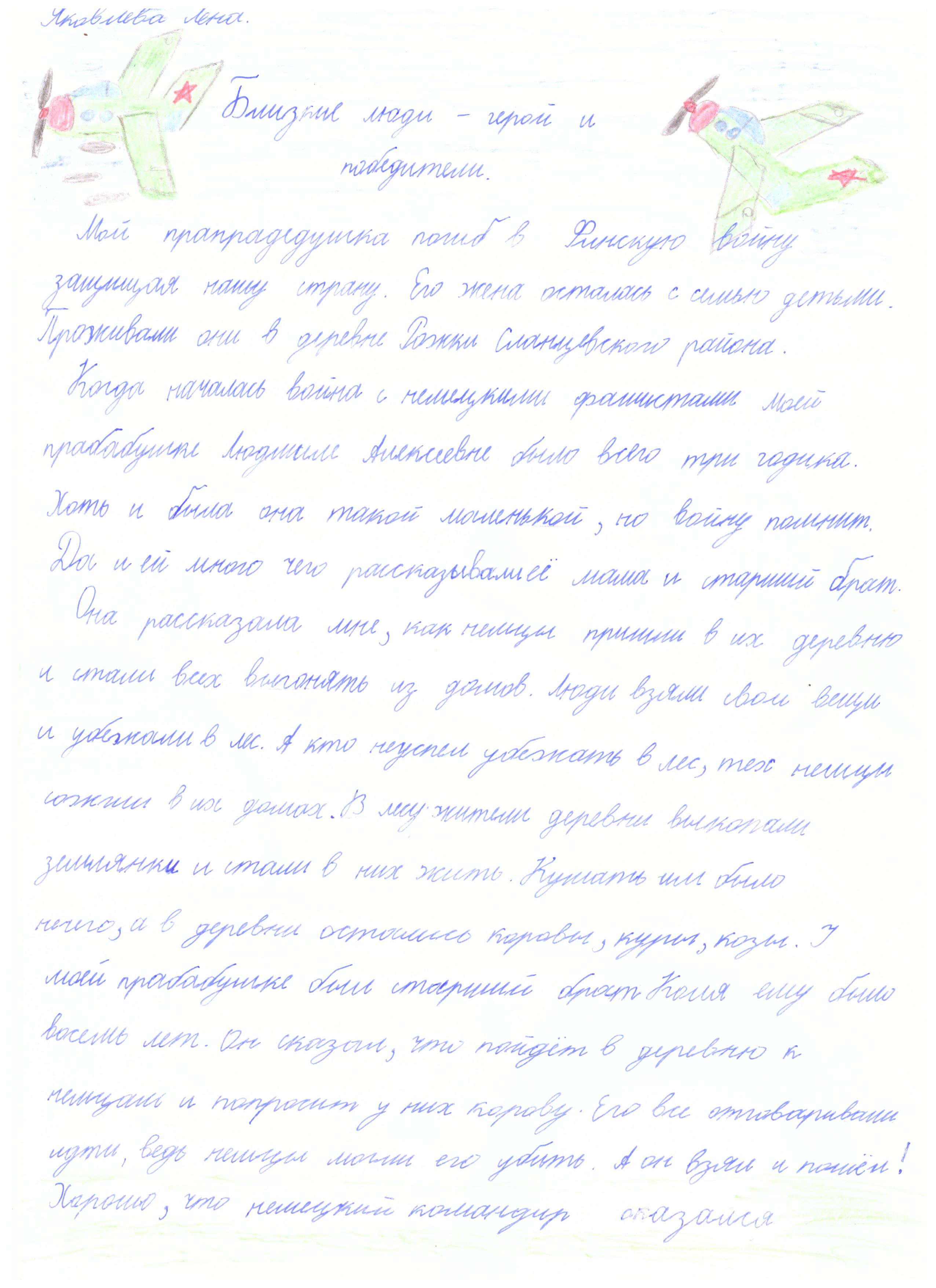 Яковлева Елена (12 ЛЕТ) - "Близкие люди - герои и победители" стр. 1, стр. 2