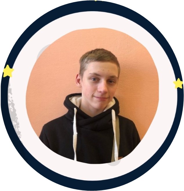 Мне 14 лет. Даже не знаю, что о себе рассказать, я вполне обычный. Думаю, что пришло время попробовать себя в роли волонтера, хотя и считаю, что любой труд должен быть оплачен. Хорошо, что тема НДЮК - космос, она мне интересна. Читать я не особо люблю, лишь то, что интересует лично меня. А что это, я вам не скажу!