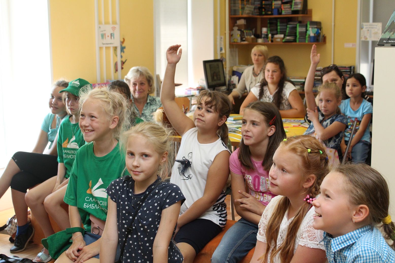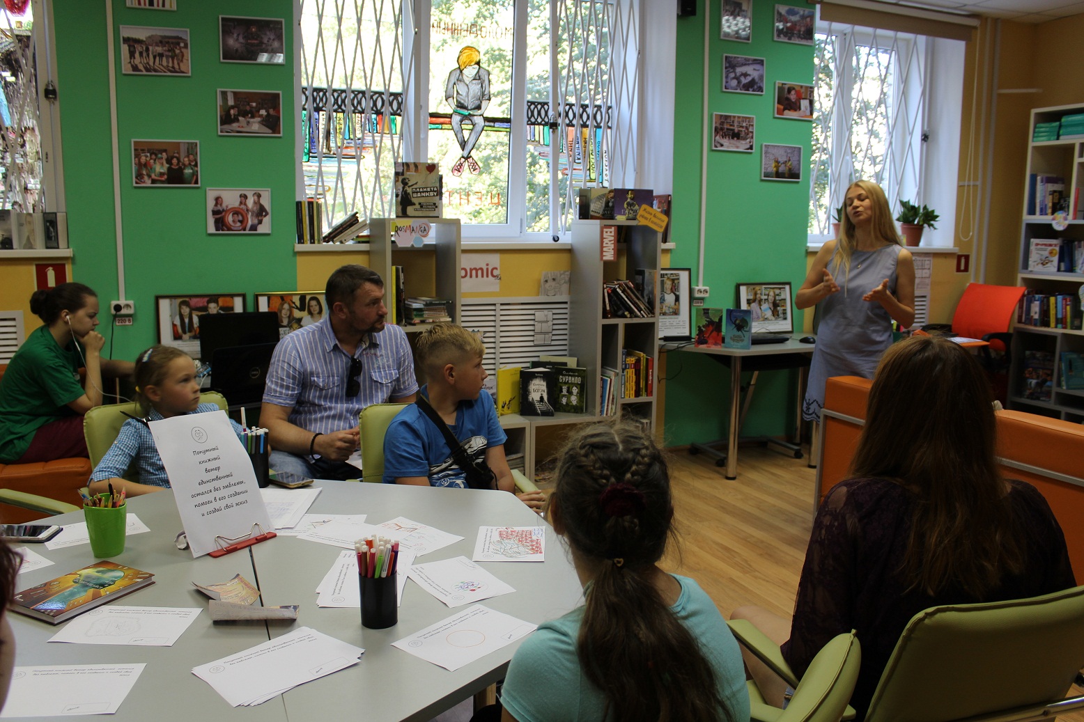 На одной из детских площадок волонтёры библиотеки познакомили детей с новой книгой Юлии Ивановой «Межпланетная азбука», играли с ними в весёлые космические игры и выполнили творческое задание в подарок писателю – создали красочные планеты разноцветных азбук. На другой – познакомились с писателем Ириной Лисовой, автором книг «Прикоснись к химере», «Когда я вырасту, я буду служить в полиции». Ирина рассказала ребятам о современных детских поэтах, прочитала стихотворения и отрывок из своей книги «Три истории о первой любви». Детям понравилось веселое стихотворение про любовь. Мальчик Стёпа, поделился, что тоже сочиняет стихи, но пока не может прочесть своё стихотворение. А девочка Вика хотела знать мнение писателя о том, из чего состоит лягушка. Ирина не растерялась и ответила, что «лягушка состоит из холодной водицы, болотной тины и пупырышек».