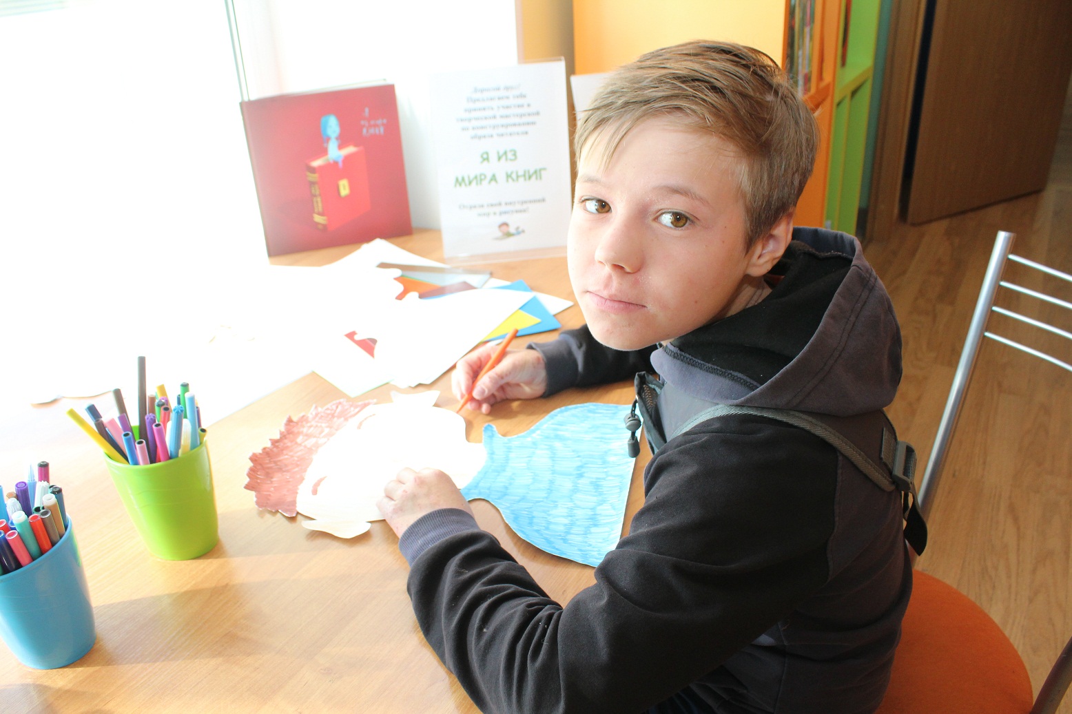 А в библиотеке в это время набирал обороты «книжный ветер». Чтобы приобщить сверстников к одному из самых ярких событий своей книжной жизни, лидеры чтения и участники «Книжного пути» Анастасия Воробьёва и Артём Матюшин рассказали читателям о своём книжном путешествии и книжных открытиях. Они пригласили юных читателей в мастерскую конструирования образа современного читателя, где в итоге было создано немало своеобразных, ярких работ.