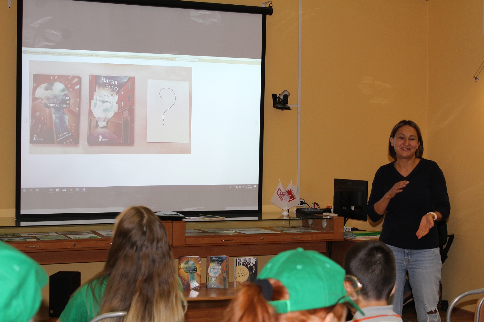 Увлекательный диалог получился с писателем Евгенией Овчинниковой. Он позволил непринуждённо поговорить о хитросплетениях книжных сюжетов и загадках человеческих судеб. Детей особенно заинтересовали реалии писательской профессии: каким образом создавать психологическое напряжение, как эмоционально насыщать произведение. Может ли быть так, что писатель потеряет интерес и волю к работе, иссякнет, или этого произойти не может. Достаточно ли прагматично и разумно заниматься писательским творчеством, что для этого нужно, как овладеть с профессиональной точки зрения всеми навыками писательской деятельности. Насколько важны хорошие названия, красивые обложки. Любопытна была история создания ею новой детективно-приключенческой трилогии. Первая книга которой «Иди и возвращайся» уже есть в нашей библиотеке.