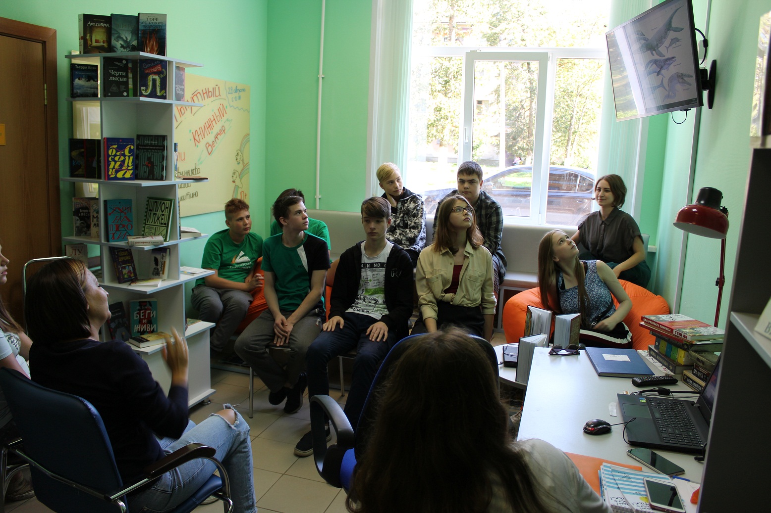 Юлия Никитина рассказала о создании комиксов. Интересной для ребят была информация о том, как разместить кадры на листе и составить в определённую общую композицию, цепляющую взгляд. Научились рисовать комиксы по хайку Мицуо Басе. Получилось довольно интересно, несмотря на то, что понять некоторые трёхстишия было довольно трудно, а нарисовать по ним комикс - тем более. Но присутствующие справились, и Юлия Никитина даже выбрала наиболее понравившуюся ей работу - комикс Елизаветы Забродской по мотивам хайку "Полевой цветок В лучах заката меня Пленил на миг".