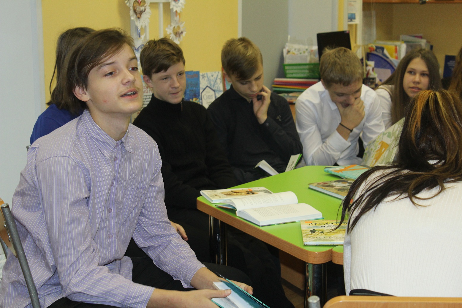 Среди книг, представленных Анастасией Воробьевой, большой интерес вызвала «История старой квартиры» Александры Литвиной и «За мелом» Сергея Махотина, стихи из которой ребята читали по очереди.