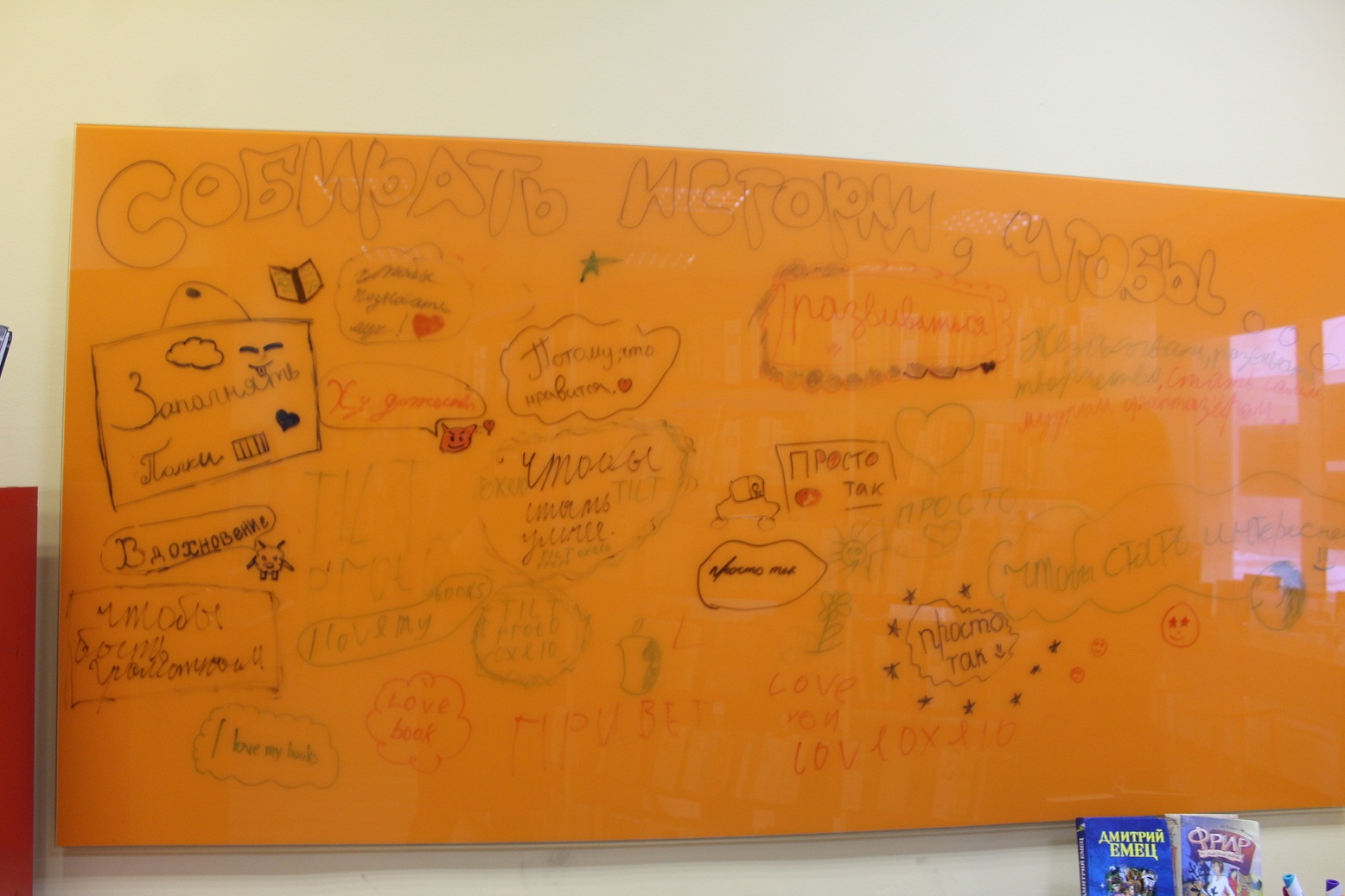 В течение первого дня проходили и такие интересные события, как квест для детей и взрослых «Я - ХРАНИТЕЛЬ ИСТОРИЙ» и «ЗАХВАТЫВАЮЩИЕ ИСТОРИИ» вместе с издательствами «Самокат» и «Детское время». На интерактивном мультитач-столе дети оставляли свои ассоциации к слову «история»: «Жизнь, приключение, рассказ».