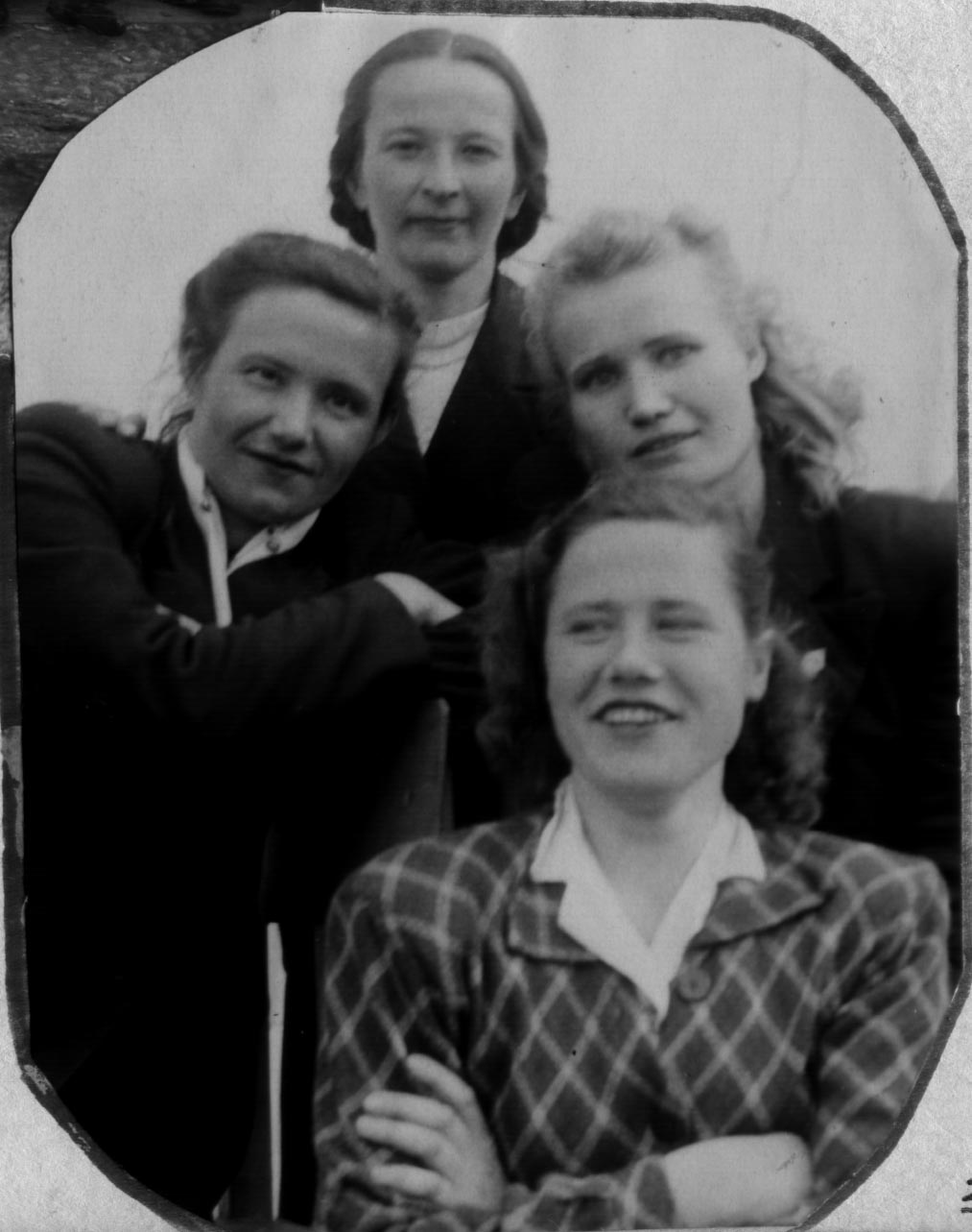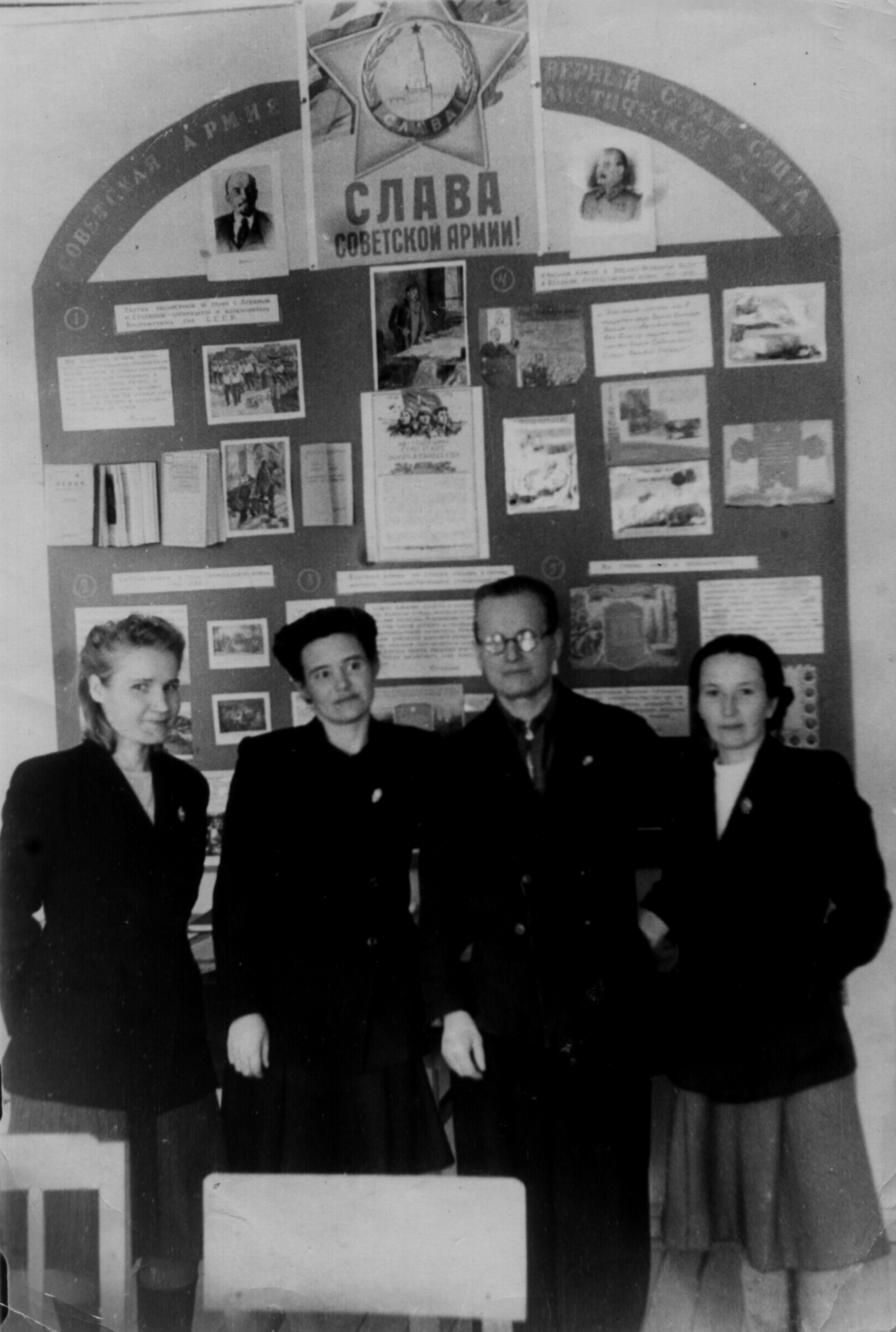Библиотекари 1950-х. Н.П.Гаврилова, М.В.Сергеева, К.Ф.Форова, Матросова (?) – работник из Выскатки (?).