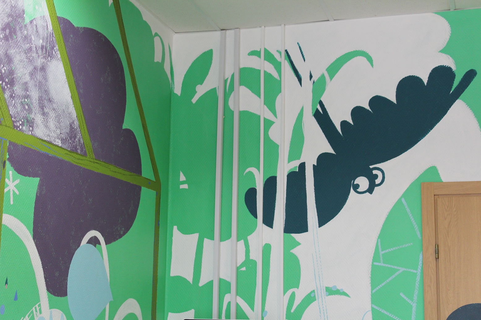 Библиотека преобразилась благодаря уникальным дизайнерским решениям художника Олеси Гонсеровской. Появилась неповторимая особенность – библиотека-квест с зашифрованными посланиями, три интерактивных стены для детского творчества и самовыражения, логотип и герой/маскот, который символизирует полёт и вдохновение, радость и свободу.