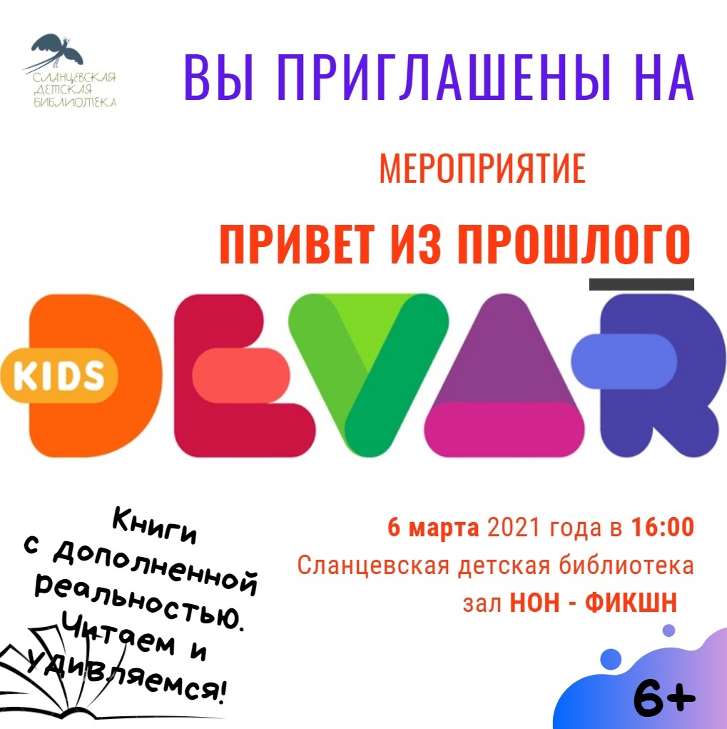 с 16.00 до 17.00 «Привет из прошлого»: ребята познакомятся с книгами нон–фикшн про динозавров в 3D и 4D формате. Узнают о приложении DEVAR, при помощи которого герои любимых мультфильмов, динозавры, животные, далекие звезды и многое другое оживает прямо на страницах книг с дополненной реальностью.