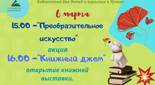 В 15.00 акция «Преобразительное искусство»: создание праздничного настроения у сестёр, мам и бабушек и просто у всей прекрасной половины человечества. А также мастер-класс по плетению кос, видеопрочтение стихов-поздравлений для всех дам и конкурс рисунков.