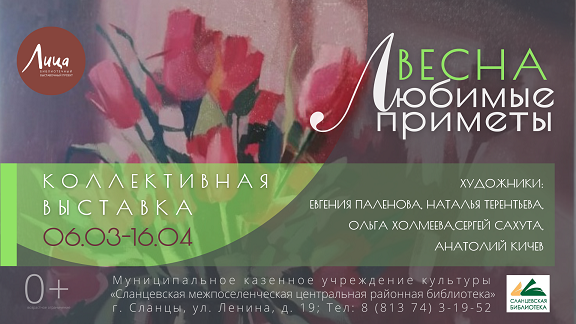 6 марта в 15.00 состоится открытие коллективной выставки живописных и акварельных работ Сланцевских художников «Весна: любимые приметы».