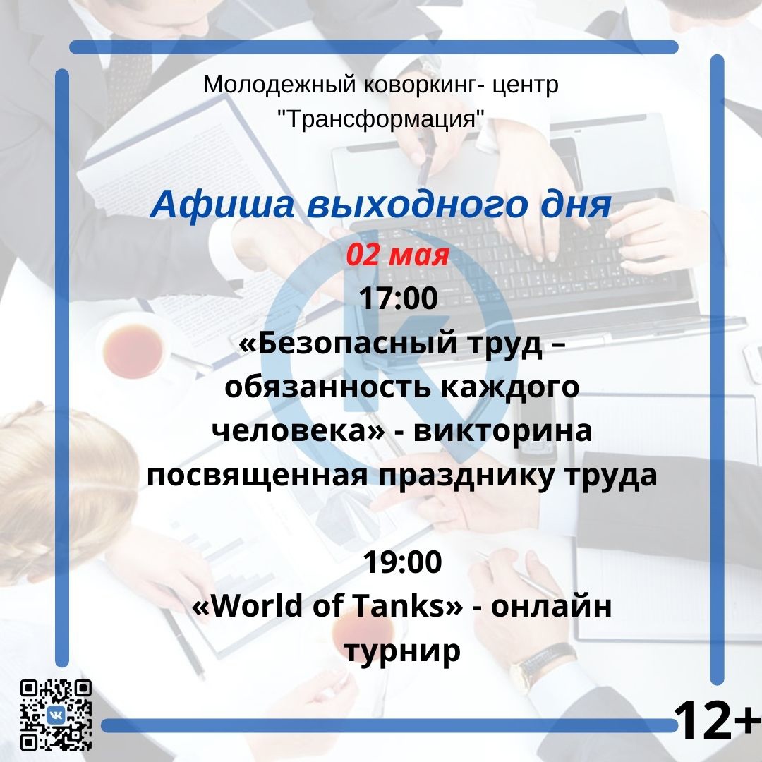 В 17:00 «Безопасный труд – обязанность каждого человека» - викторина, посвященная празднику труда, воспитывающая ответственное отношение к своему здоровью и здоровью окружающих людей, привлекающая внимание к истории и современным достижениям в области охраны труда, а также создание условий для развития творческих способностей и эрудиции обучающихся.