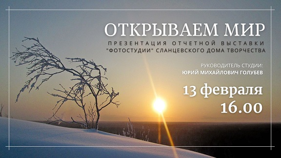 В 12.00 подведение итогов работы фотовыставки участников фотостудии, действующей на базе муниципального учреждения дополнительного образования «Дом творчества». Награждение руководителем студии Ю.М. Голубевым ребят, чьи работы были размещены на выставке «Открываем мир» в витрине библиотеки, а также победителей фотоконкурса «Юность России 2020».