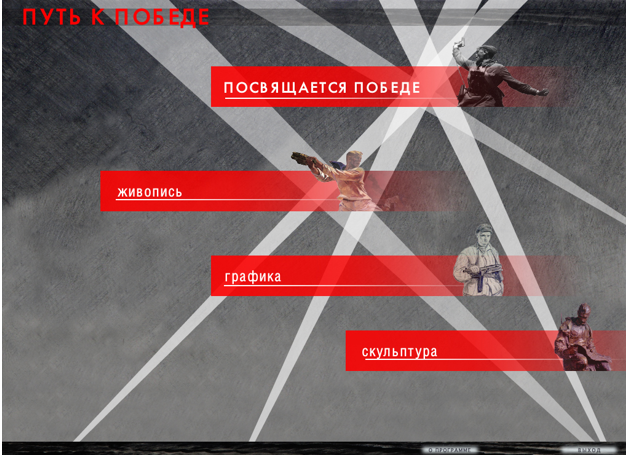 В 15.00 «Путь к Победе» - интерактивное занятие. В Информационном центре «Русский музей: виртуальный филиал» пройдет занятие, посвященное истории создания шедевров живописи и скульптуры в годы Великой Отечественной войны. В ходе занятия будет использоваться интерактивная программа, в которой представлены живопись, рисунки и гравюры, плакаты и скульптуры, созданные художниками в блокадном Ленинграде, в готовой к обороне Москве, на фронте и в тылу.