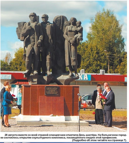28 августа 2016 года, в День шахтера, в районе больничного городка состоялась церемония торжественного открытия памятника шахтерам, в которой приняли участие депутат Государственной думы Николай Кузьмин, депутат Законодательного собрания Ленинградской области Владимир Петров, глава Сланцевского района Марина Чистова, глава администрации Сланцевского района Игорь Федоров, глава Сланцевского городского поселения Руслан Шотт, бывший руководитель объединения «Ленинградсланец» Григорий Фрайман. В ходе открытия говорилось о том, что возвращение памятника – важное событие для города, который своим возникновением обязан развитию добычи горючих сланцев и героическому труду шахтеров.