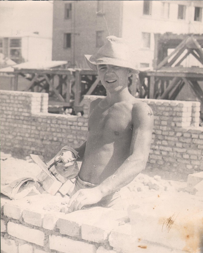 На фото: Я. Богданов в студенческом строительном отряде "Ташкент-66".