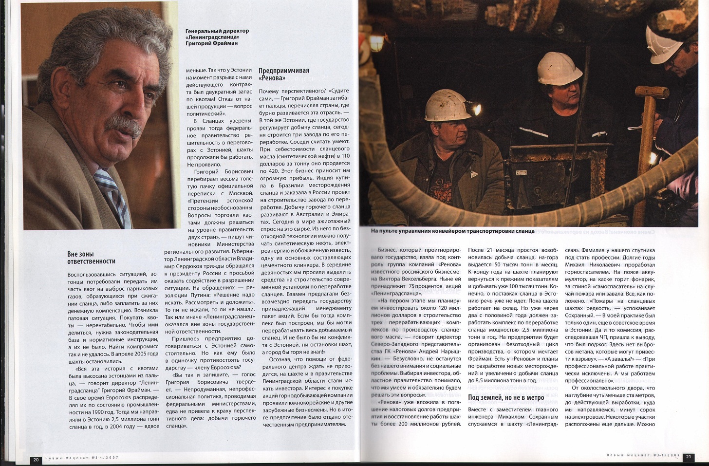 "Мы всё равно будем копать нефть" - рассказ о попытке возрождения сланцевских шахт. Журнал "Новый меценат", № 3-4/2007.