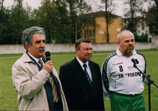 На снимке: Г.Б. Фрайман, Я.Я. Богданов (Почётный гражданин города Сланцы, бывший глава администрации Сланцевского района), В.В. Иванов - бывший редактор газеты "Знамя труда", (депутат, председатель ЗакСа Ленинградской области, вице-губернатор).