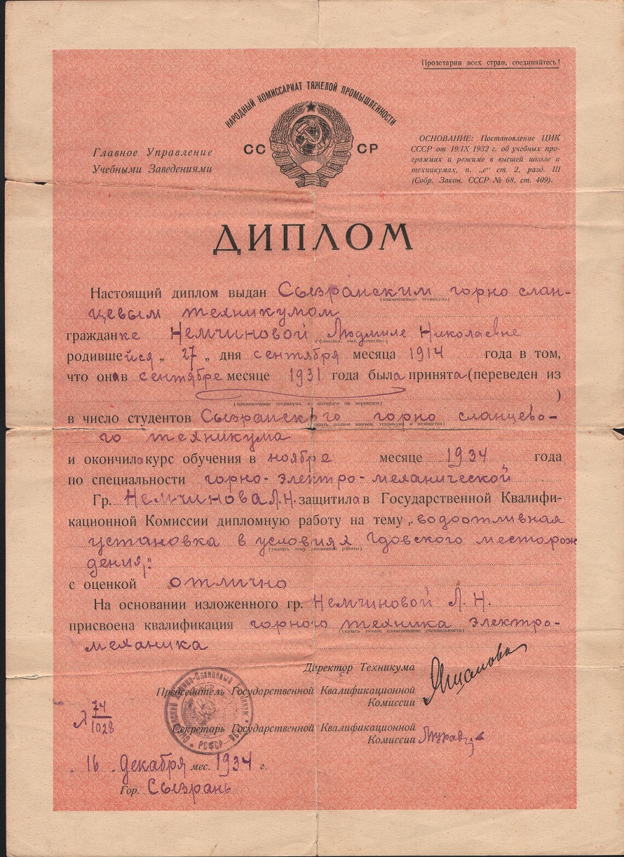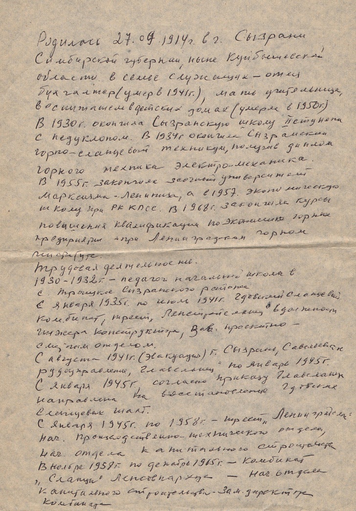 Автобиография, написанная Л.Н. Немчиновой.