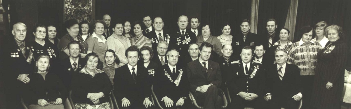 На снимке: А.А. Павлов (первый ряд третий слева) на встрече с ветеранами на заводе "Сланцы".
