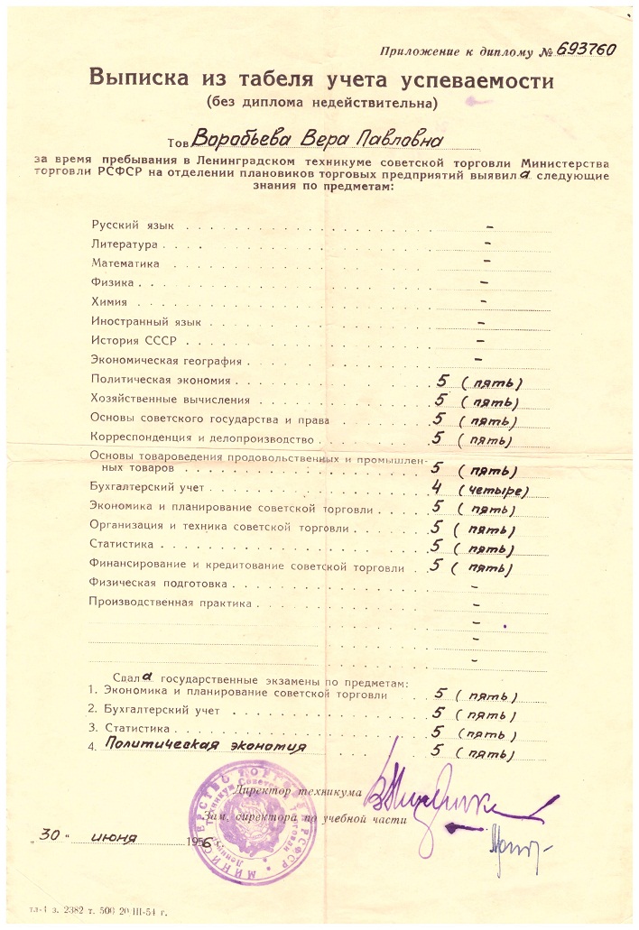ВОРОБЬЁВА ВЕРА ПАВЛОВНА