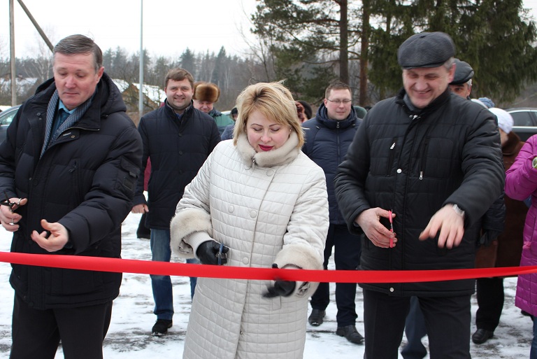 На фото: здание очитсных сооружений;торжественное открытие - глава администрации Гостицкого поселения В. Лебедев, глава Сланцевского му6ниципального района М. Чистова, депутат В. Матвеев.