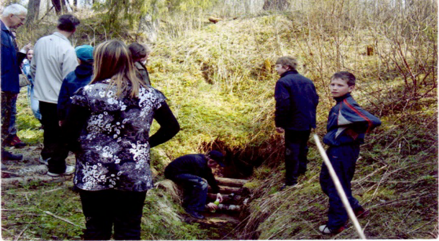 На фото: экскурсия учащихся к Пещёре в местности Волчарня. Родник с целебной водой.