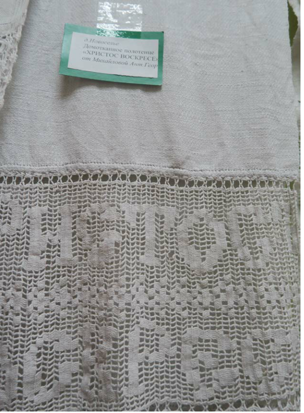 Домотканное полотенце «Христос Воскресе» от Михайловой Антонины Георгиевны (д.Новоселье).