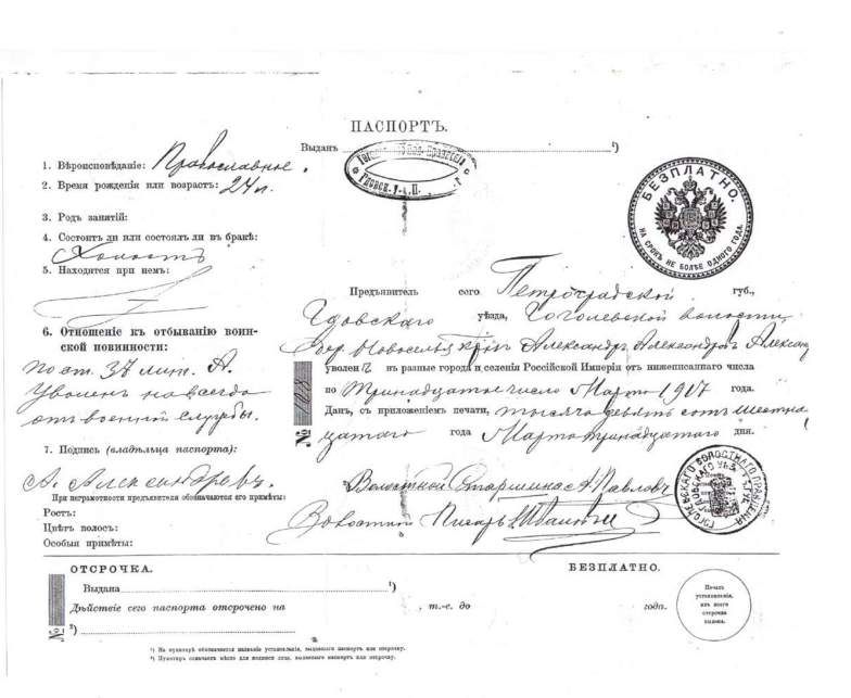 Паспорт отца Тепловой Ирины Александровны, рассказчицы о жителях деревни Новоселье.