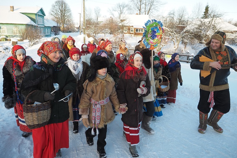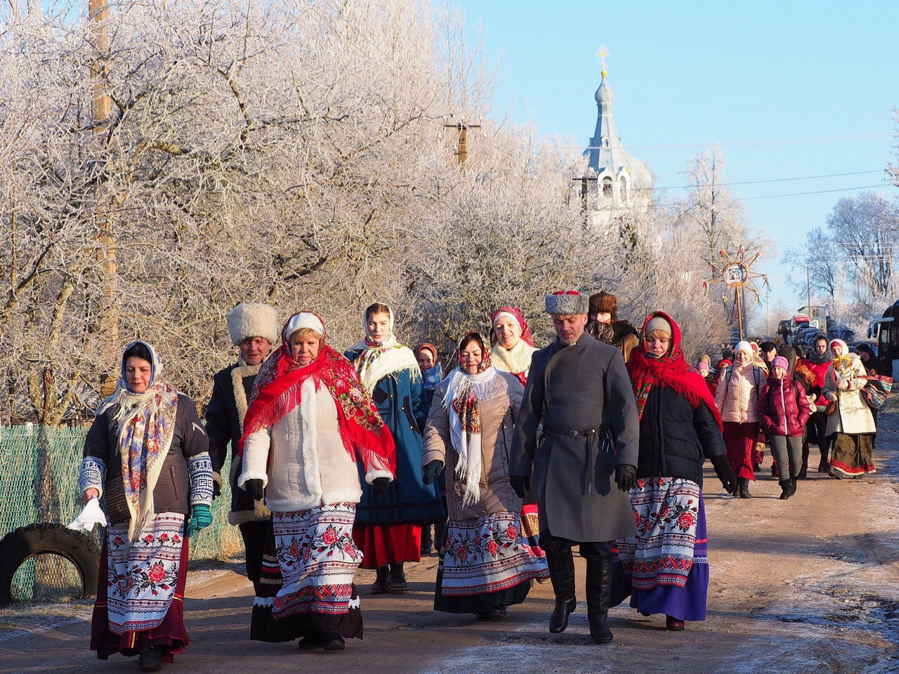 Красочным шествием фольклорных коллективов, удивляющим своей самобытностью и колоритом, было открыто это грандиозное мероприятие – гости и участники фестиваля, одетые в традиционные русские костюмы и представляющие образы различных персонажей, популярных в те времена на Руси, прошли по главной улице деревни. Тут тебе и барышни-крестьянки, и русские мужики, и рыцари в доспехах, и «нечисть» всякая. А детей-колядовщиков на празднике просто было не счесть.