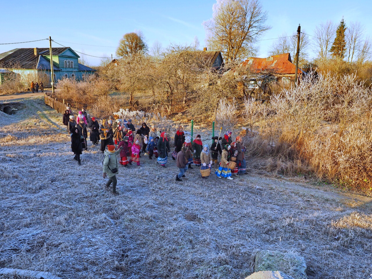 После напутствия организаторов коллективы и зрители разбились на группы и с весёлыми колядками и танцами пошли по деревенским дворам. Хороших колядовщиков хозяева обязательно награждали щедрой колядой!