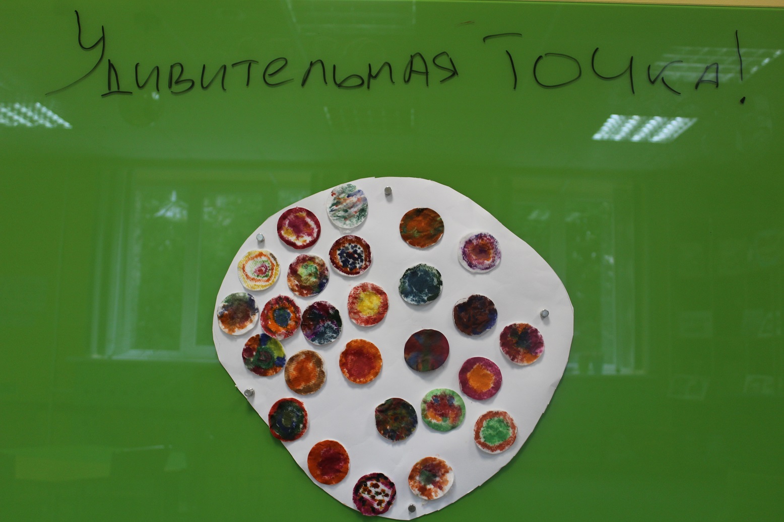 В Сланцевской детской библиотеке снова отметили Международный день точки! 15 сентября в центре внимания читателей и библиотекарей оказалась книга Питера Г. Рейнольдса «Точка». Она в 2009 году положила начало Международному дню точки - празднику индивидуальности и творчества. Как пишет сам автор, главное условие участия в празднике - прочитать книгу, а потом как-то творчески выразить себя: нарисовать коллаж из точек; написать эссе о том, как важно оставить свой след в этом мире, и каким смелым нужно для этого быть; пойти на фотоохоту и заснять предметы, имеющие форму точки; написать стихотворение или песню о точке. Читатели детской библиотеки из всех этих творческих жанров выбрали живопись и графику. Питер Г. Рейнольдс рассказывает о волшебстве, которое может сотворить самая обычная точка, оказавшаяся на листе бумаги.