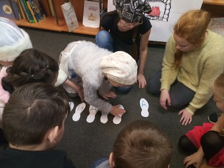 За каждое выполненное задание участник получал награду - трафарет следка, на котором была написана буква. Когда все следки были собраны и составлено слово, дети узнали главную тайну праздника: где спрятаны пироги.