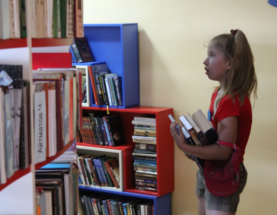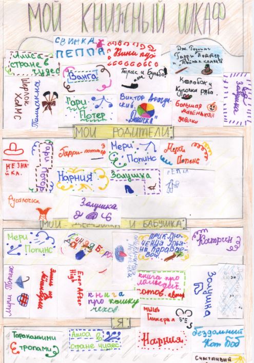 На площадке библиобуса Ленинградской областной детской библиотеки дети рисовали волшебные книжные шкафы с любимыми книгами своей семьи, где дружно стоят рядом их любимые книги рядом с любимыми книгами бабушки, дедушки, мамы и папы.