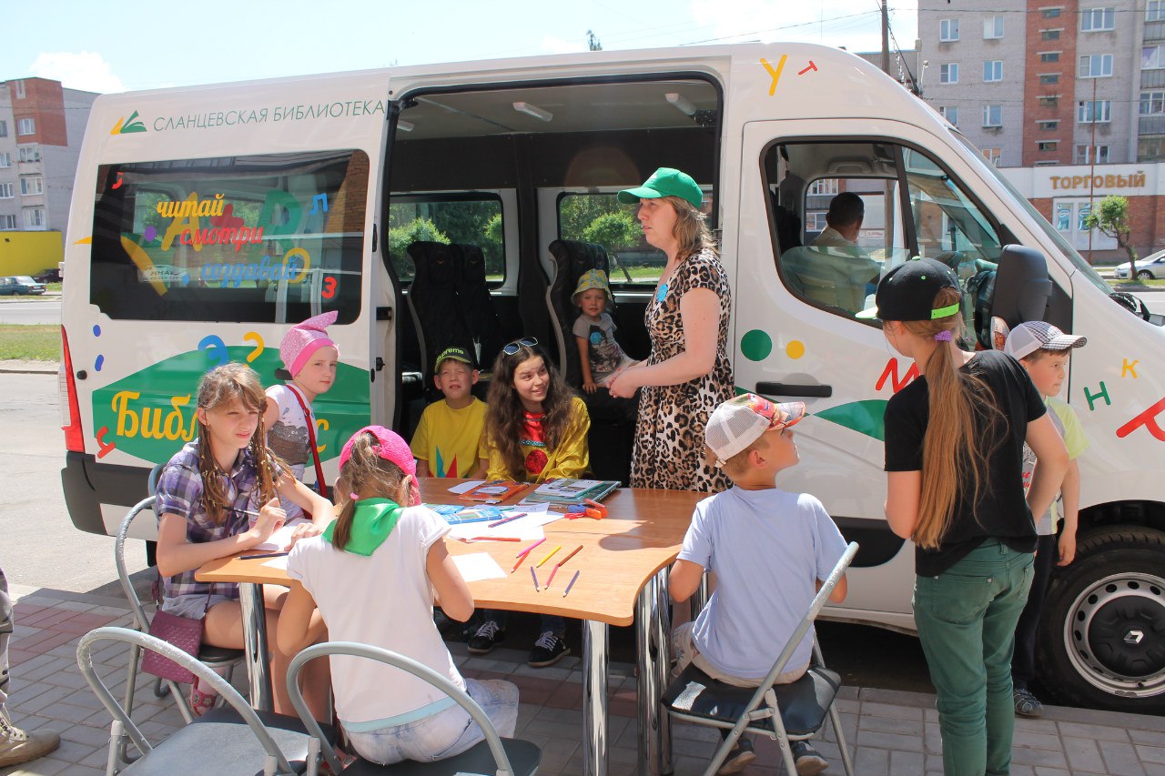Работало два библиобуса – Ленинградской областной детской библиотеки и Сланцевской библиотеки со своими творческими площадками.