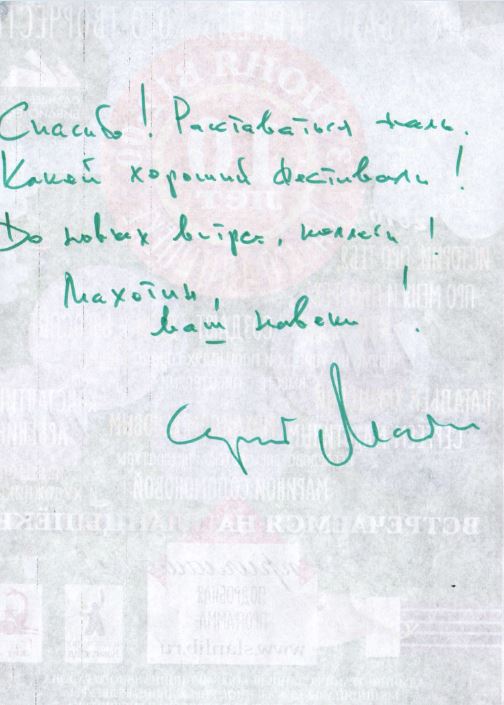А писатели оставили на память Фестивалю замечательные, теплые, оригинальные пожелания!!!