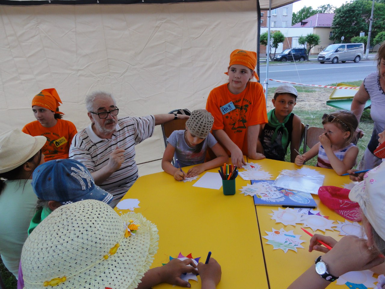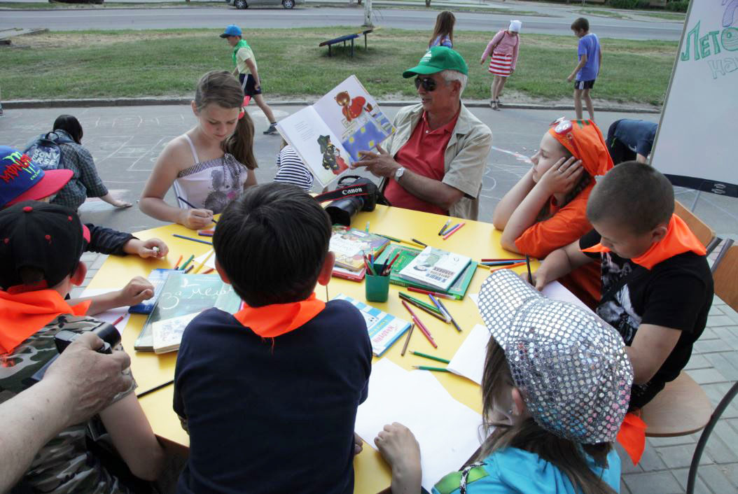На площадке библиобуса Сланцевской библиотеки дети сочиняли новые интересные истории по книге К. Арбенина «Тараканьими тропами» соединяя и пересекая разные художественные миры. Также дети иллюстрировали стихи Михаила Яснова, рисовали свою семью.