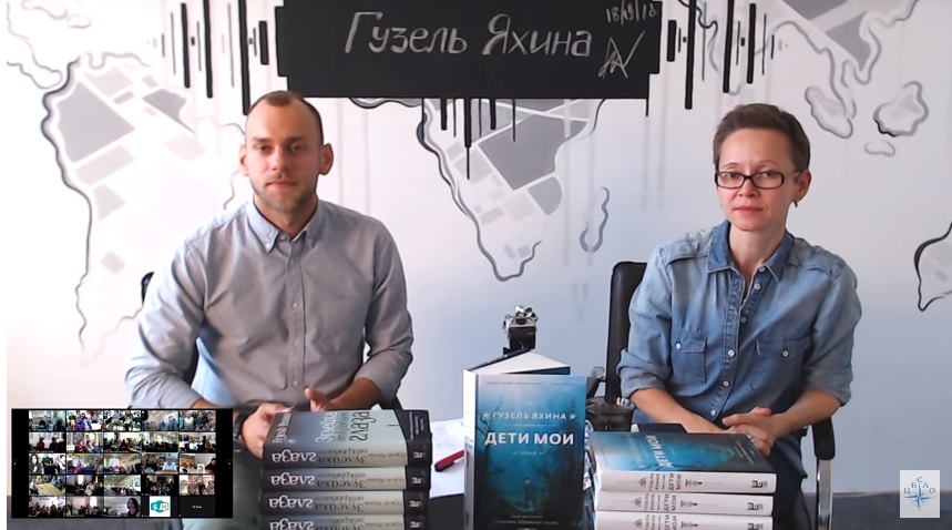 Гузель Яхина рассказала, о том, что любит проводить свободное время в библиотеке, особенно в городе Казань, откуда она родом. А её самый любимый фильм - «Андрей Рублев». Много рассказывала о создании и сюжете ее новой книги «Дети мои». Этот роман повествует о судьбе немецкой автономии на Волге в период с 1916 по 1938. Некоторые отрывки текстов этого произведения были использованы в Тотальном диктанте-2018».