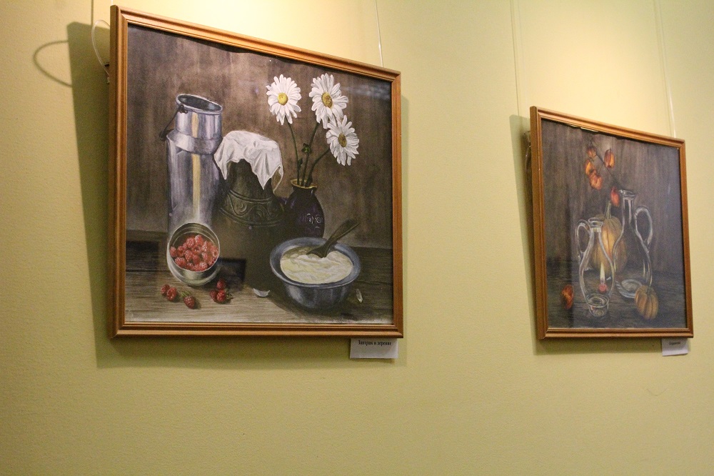 На выставке представлены 20 картин, выполненных в акварельной, масляной, пастельной технике и 10 карандашных рисунков и эскизов.