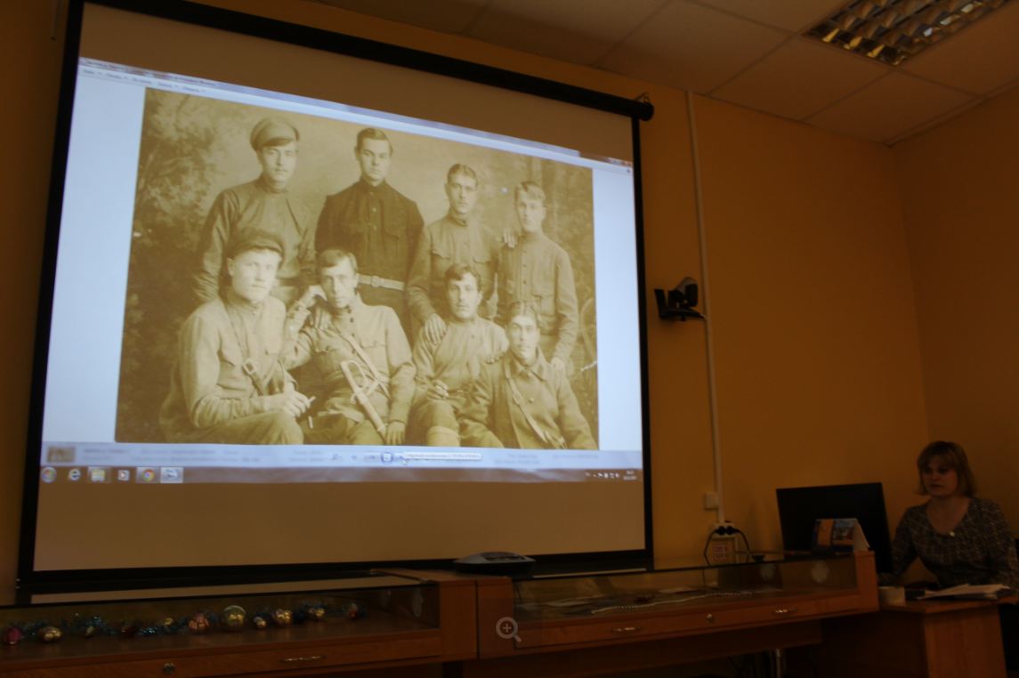 Л.Г. Мальцева показала ряд фотографий из фондов музея, на которых запечатлены активные участники событий столетней давности по установлению советской власти в крае –Я.А. Ветров, А.С. Шалбин, С.А. Шершнев. Интересно было увидеть фотографию телеграфного аппарата, на котором работал еще до начала до первой мировой войны на почтово-телеграфной станции в Больших Полях Карл Густавович Рянни.