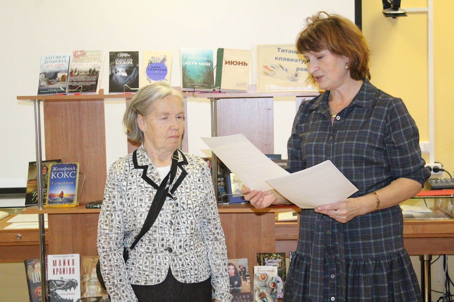 Всех пришедших на праздник тепло и радушно приветствовала директор библиотеки Татьяна Анатольевна Соловьева. Самые выдающиеся читатели нашей библиотеки были отмечены благодарственными письмами за проявление активного читательского интереса, желание делиться своими размышлениями о чтении и знакомиться с новыми литературными именами.
