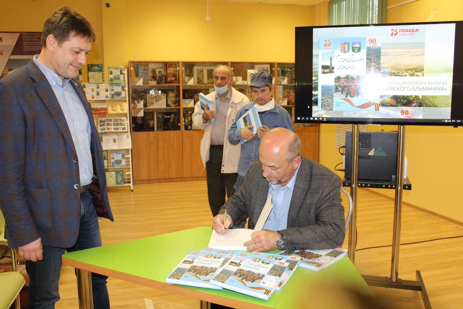 Призовой экземпляр альманаха вручили Кириллу Сёмину - победителю молодёжного исторического квеста, который проходил 9 мая в День Победы в группе библиотеки ВКонтакте. Также редактор альманаха В.В. Аристов выразил благодарность А.Г. Плюсковой, дизайнеру альманаха, и Алине Михайловой, автору фотографий.