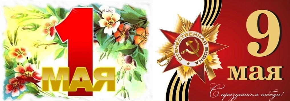 Выходные дни – 1-4 мая, 9 – 11 мая