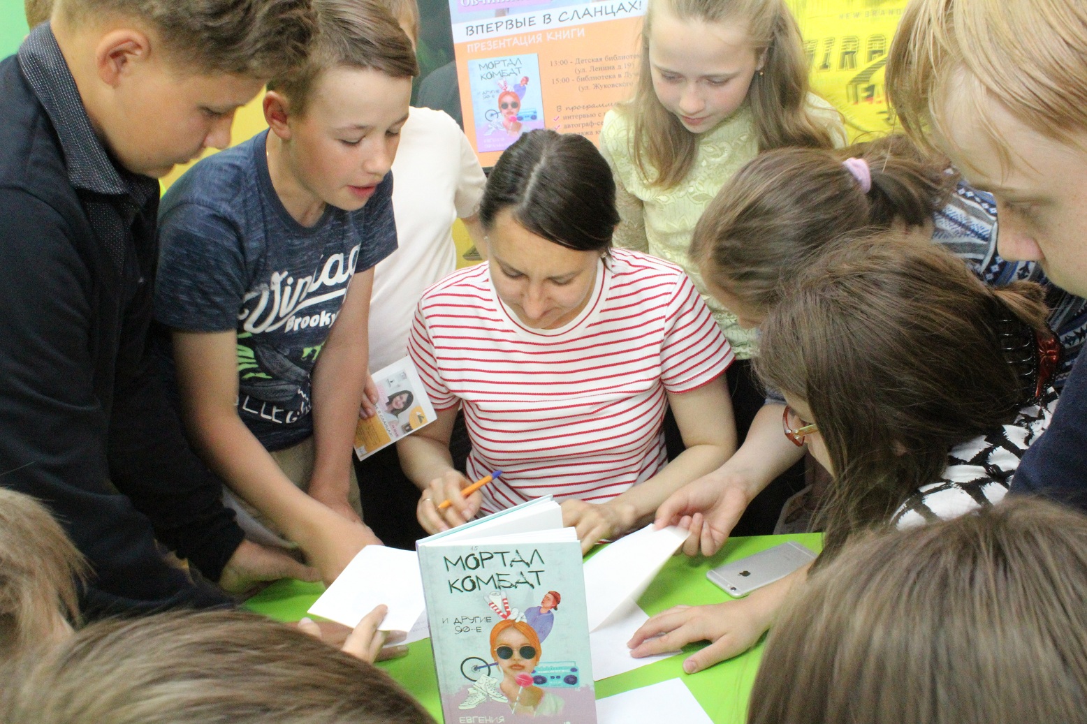 В 2018 году гостем Сланцевской библиотеки стала Евгения Овчинникова, автор книги «Мортал комбат и другие 90-е». Книги такого склада знатоки и любители детской литературы называют «Мемуары детства». Из неё современные дети и подростки смогут узнать, а взрослые – вспомнить, как жили, о чём мечтали и отчего печалились те, чьё детство и отрочество пришлось на бурные и смутные 90-е годы. Евгения рассказала о своём детстве и отрочестве, которые прошли в тревожную и непредсказуемую эпоху начала перестройки. Современным подросткам трудно представить себе реалии того времени, когда почему-то выдавали зарплату не деньгами, а тазами, фарфоровыми сервизами или театральными билетами, все ругали политика Горбачёва, и не знали, что будет дальше! Евгения произвела приятное впечатление на участников встречи, как контактный, обаятельный и энергичный современный человек, которому интересно жить, писать, и который не боится меняться, пробовать что-то новое. Вот какие впечатления остались от этой встречи у читательницы нашей библиотеки: «Мне больше всего понравилось сидеть рядом с Евгенией и наблюдать, как и что она говорит. Вот это и есть читательское счастье!» Алина Преснова Благодарим издательство «КомпасГид» и PR директора Наталью Эйхвальд за возможность пообщаться с Евгенией и открыть для себя новую книгу.