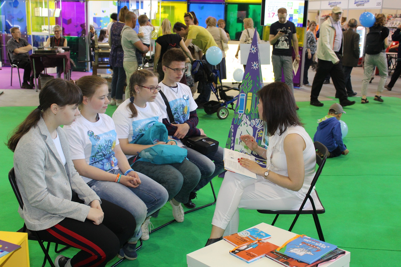 Для юных читателей и детских библиотекарей самые яркие события Салона, конечно же, происходили на Детской площадке Ленинградской областной детской библиотеки. 17 мая там прошла интересная дискуссия по материалам исследования «Антропология семейного чтения» «Книги, которые объединяют/разделяют поколения в семье», в которой приняли участие учёные-исследователи Инна Сергиенко (ИРЛИ), Светлана