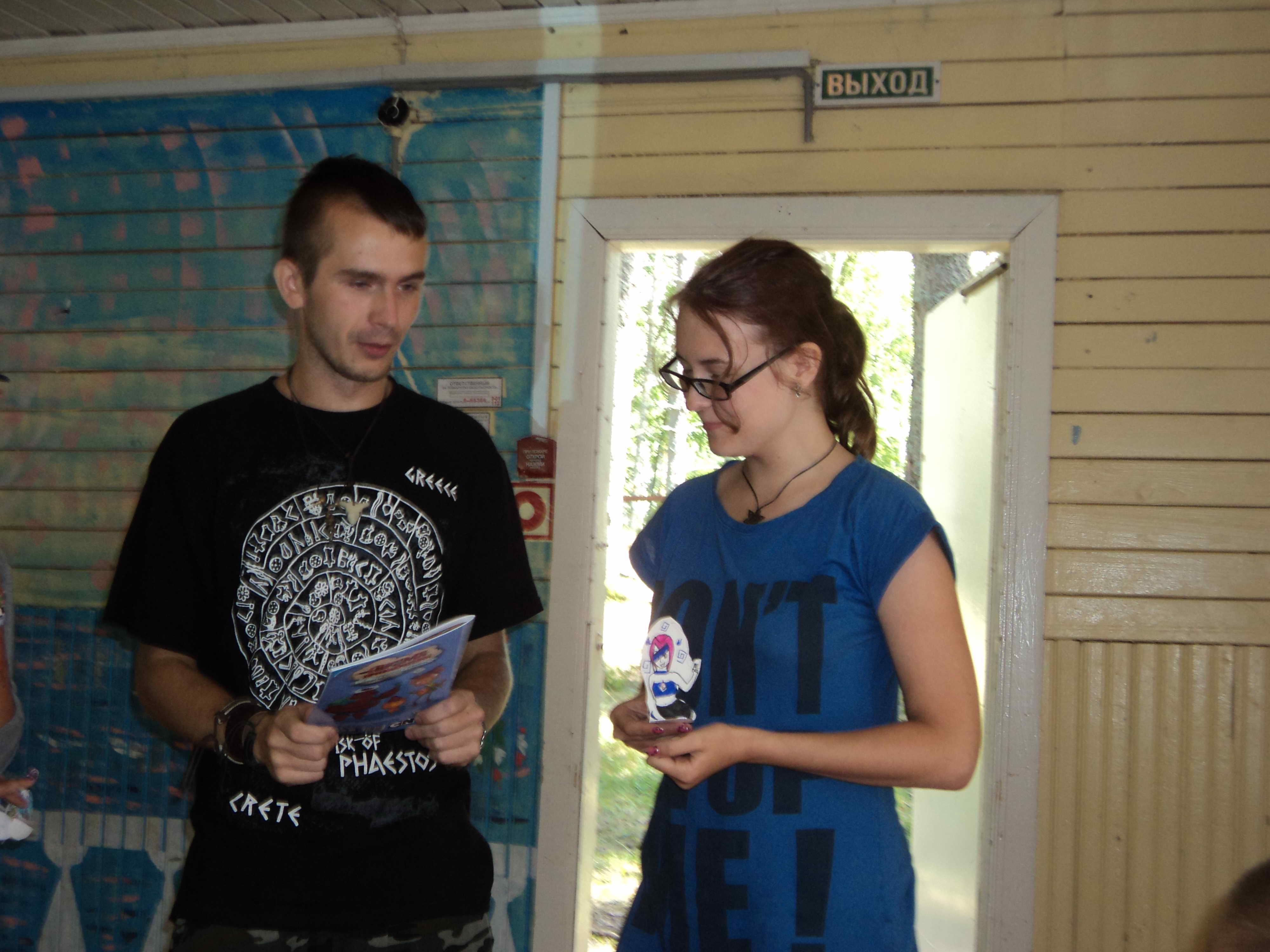 Победителем в конкурсе стала Котина Настя, которая придумала Девушку – Призрак. Ей и достался главный приз – сборник комиксов Владимира с автографом автора. Были отмечены интересные работы Мокеевой Аноры, Ильина Ильи и самой маленькой участницы конкурса, семилетней Латыповой Вики. Эти ребята были награждены синими бейсболками с надписью BOOKWАY (Книжный путь).