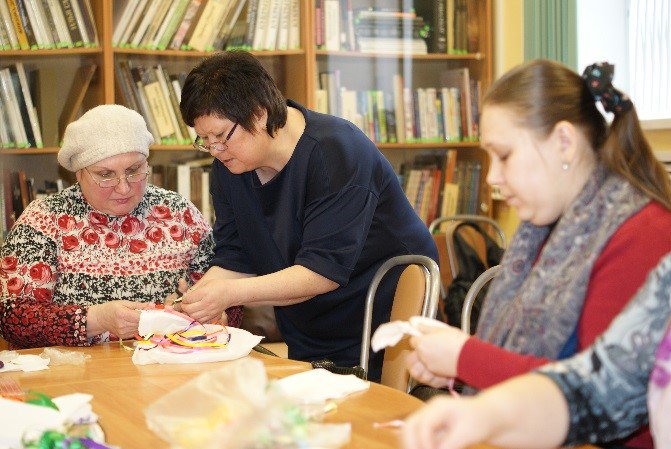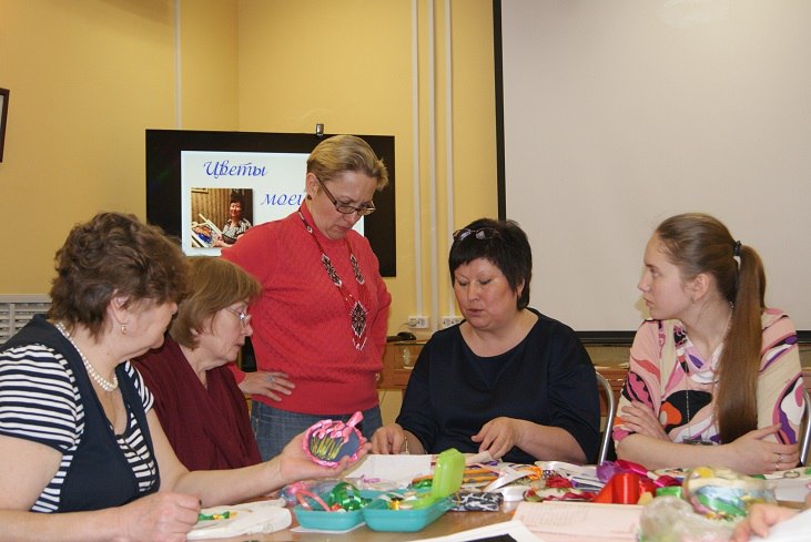 В рамках этого проекта, 4 марта в Сланцевской публичной библиотеке состоялось два мастер-класса по вышивке лентами, которые проводила Динара Николаевна Зимина, наша гостья из Гатчины.