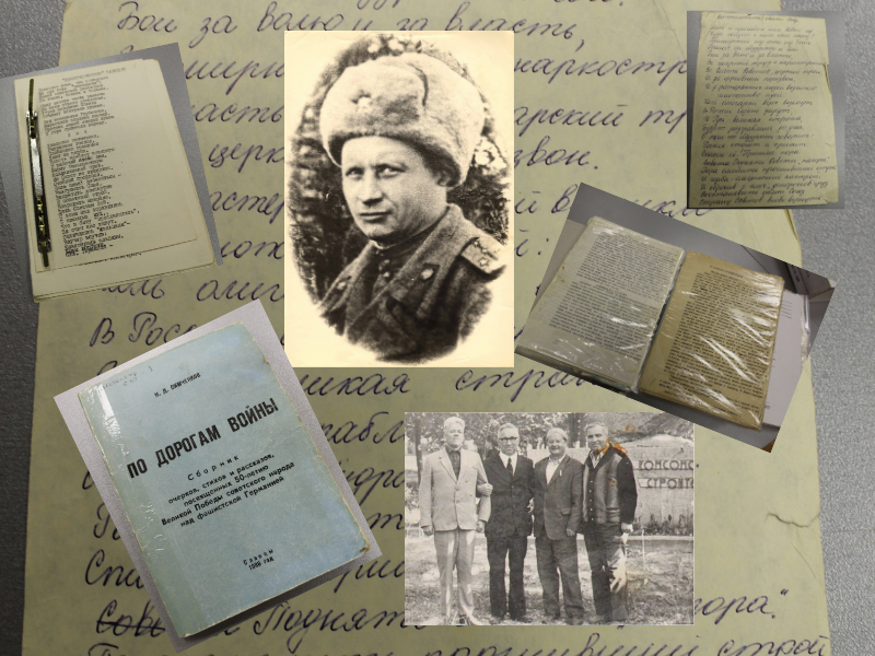 4. Рукописи, стихи. Многие рукописи легли в основу сборника очерков, стихов и рассказов, посвящённых 50-летию Великой Победы советского народа над фашистской Германией «По дорогам войны» (Н. Д. Симченков, г. Сланцы, 1996 год). Это рассказы о военных событиях, земляках-участниках Великой Отечественной войны, стихотворения, посвящённые друзьям-фронтовикам.