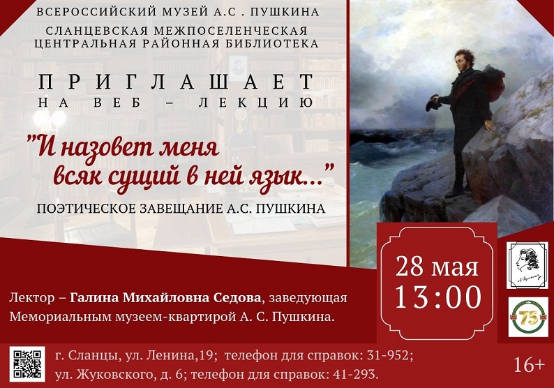 28 мая. Заведующая мемориальным музеем-квартирой Пушкина Г.М. Седова прочтёт лекцию «И назовёт меня всяк сущий в ней язык…». .jpg)